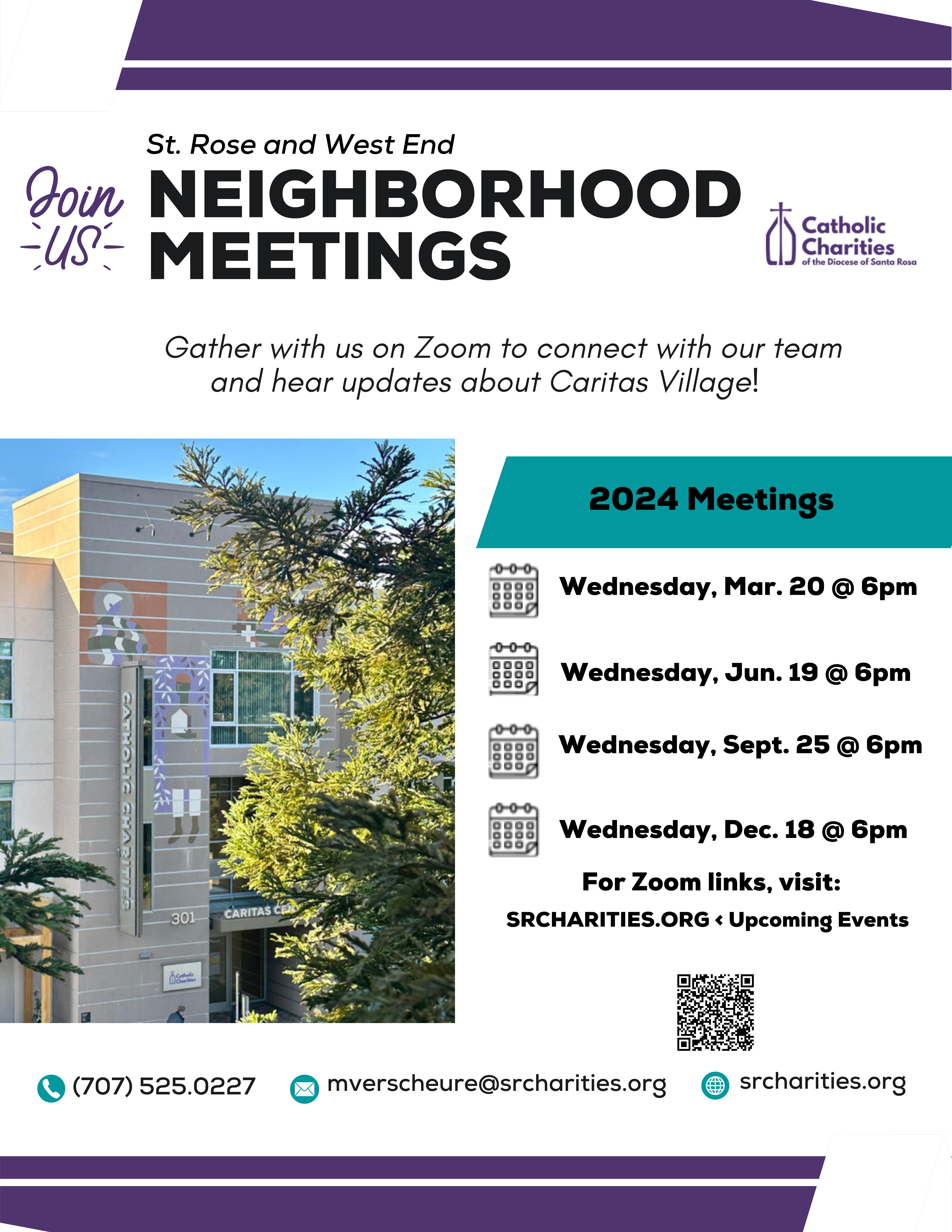 Are you a resident of the St. Rose or West End Neighborhood? Gather with us on Zoom to connect with our team and hear updates about Caritas Village! This meeting will include representatives from Catholic Charities, Burbank Housing, and the City of Santa Rosa.